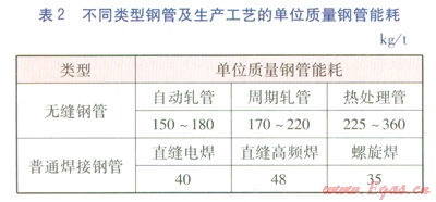 鋼管生產(chǎn)的環(huán)境影響按照生產(chǎn)工序中生產(chǎn)單位產(chǎn)品的能源消耗定額[15]來分析,此能耗定額反映了我國的平均水平。不同類型鋼管及生產(chǎn)工藝的單位質(zhì)量鋼管能耗見表2,能耗以標準煤耗量計。進而可套用標準煤生產(chǎn)和使用的數(shù)據(jù)清單得到鋼管生產(chǎn)能耗的清單數(shù)據(jù)。