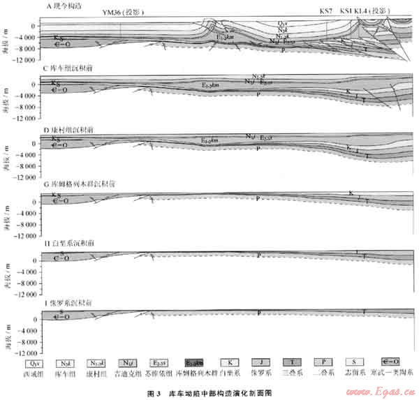 整個庫車坳陷處于相對穩(wěn)定的沉積時期。庫姆格列木群是在穩(wěn)定或弱伸展環(huán)境中沉積的,在克拉蘇沖斷帶與秋里塔格沖斷帶沉積了巨厚的膏鹽巖層;蘇維依組沉積厚度穩(wěn)定;吉迪克組有微弱的構造活動。推測吉迪克組沉積時期可能發(fā)生輕微的底辟活動,但構造變形不明顯,斷裂也不發(fā)育。