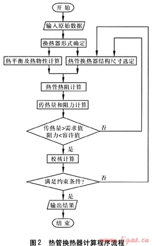 熱管換熱器的設(shè)計(jì)計(jì)算過(guò)程具有一定的復(fù)雜性,往往要經(jīng)過(guò)多次試算,用計(jì)算機(jī)輔助設(shè)計(jì)可以大大提高計(jì)算精度和速度,有利于縮短產(chǎn)品研制時(shí)間和降低研制成本,具有十分明顯的應(yīng)用價(jià)值。本文基于熱管換熱器的等效連續(xù)間壁式計(jì)算模型及計(jì)算方法,用VB語(yǔ)言編制了熱管換熱器的通用設(shè)計(jì)計(jì)算程序,計(jì)算程序流程見(jiàn)圖2。