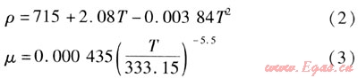 水的密度和黏度隨溫度變化的表達式為[11]: