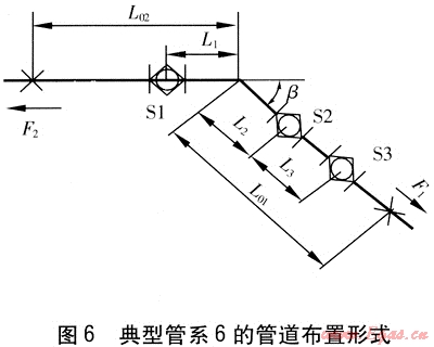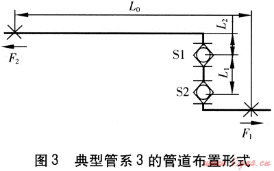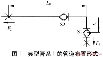 鉸鏈波紋管補(bǔ)償器主要應(yīng)用于架空、管溝、局部架空敷設(shè)的管道中,任何復(fù)雜的管線,都可以通過(guò)固定支座分割成若干簡(jiǎn)單形狀的管段[2]。這里主要研究鉸鏈波紋管補(bǔ)償器在典型管系中的相關(guān)計(jì)算。