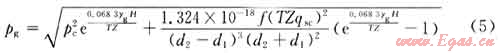 煤層氣井與常規(guī)氣井開采最大的不同是煤層氣產(chǎn)量較低,且相對(duì)常規(guī)氣井來說井口壓力較低,所以井口、套管、油管所用的級(jí)別都較低。因此,在利用式(5)計(jì)算煤層氣井氣柱段壓力時(shí),常忽略第二項(xiàng)所造成的影響。又由于實(shí)測(cè)套壓較低,在實(shí)際的計(jì)算中可以采用以下近似計(jì)算式: