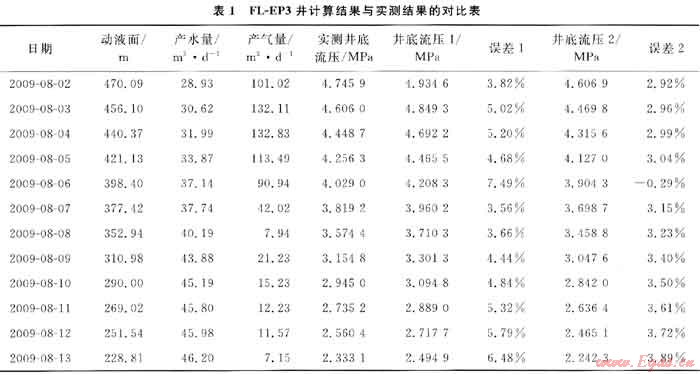 3) 柳林地區(qū)FL-EP3實(shí)際應(yīng)用結(jié)果表明,通過對(duì)比采用Hasan-Kabir推導(dǎo)的解析方法計(jì)算的井底流壓和根據(jù)修正公式計(jì)算的井底流壓,得出修正公式計(jì)算的結(jié)果與實(shí)測(cè)的壓力值較接近,誤差在4%以內(nèi),可靠度更高,且根據(jù)修正公式計(jì)算的井底流壓和通過試井測(cè)得的幾個(gè)特殊測(cè)試點(diǎn),可以確定生產(chǎn)壓差。