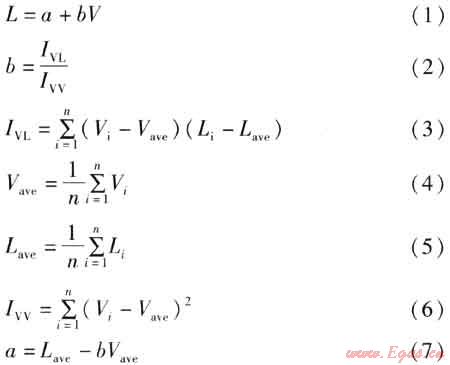 從20世紀(jì)末開始,我國天然氣發(fā)展迅速,不僅建設(shè)了數(shù)條輸氣管道,配氣管道也得到了發(fā)展,統(tǒng)計資料也日趨完善。根據(jù)10余年統(tǒng)計資料,采用回歸分析法,建立配氣管道長度與年燃?xì)庀M總量之間的關(guān)系成為可能。1996—2008年我國配氣管道長度與年燃?xì)庀M總量的統(tǒng)計數(shù)據(jù)見表1[1],V為各年燃?xì)庀M總量,單位為m3/a,L為各年配氣管道的長度,單位為km。由表1數(shù)據(jù)建立配氣管道長度與年燃?xì)庀M總量的關(guān)系曲線,見圖1。由圖1可知,配氣管道長度與年燃?xì)庀M總量基本成線性關(guān)系,因此可采用回歸分析法建立二者的函數(shù)關(guān)系。