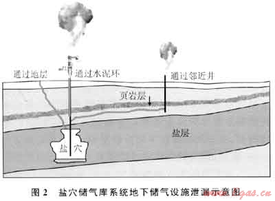 鹽穴地下儲(chǔ)氣庫(kù)是通過(guò)井筒將氣體注入鹽丘或鹽層上的廢棄鹽穴或淋漓建造的鹽穴內(nèi)進(jìn)行儲(chǔ)存,并可采出來(lái)滿(mǎn)足市場(chǎng)需求。儲(chǔ)氣庫(kù)應(yīng)具備兩種能力:①儲(chǔ)存天然氣并阻止天然氣釋放到周?chē)h(huán)境中;②以有效速率為用戶(hù)提供儲(chǔ)存天然氣。一旦喪失這兩種或其中一種能力,即定義為失效,失效模式包括泄漏和傳輸能力下降兩種[1]。特別強(qiáng)調(diào)的是,對(duì)于地下儲(chǔ)氣設(shè)施應(yīng)考慮兩種失效模式,而對(duì)于地面站場(chǎng)設(shè)施和地面集輸管線則只關(guān)注泄漏模式。