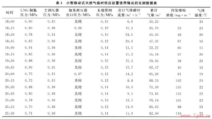 2) 采取了多個鋼瓶并聯(lián)供氣,提升了供氣能力,同時LNG鋼瓶輸出的氣態(tài)天然氣經(jīng)過增熱器后,氣體溫度完全在正常的范圍內(nèi),最小為11℃,不會由于氣溫過低造成調(diào)壓加臭箱內(nèi)的設(shè)備損害。