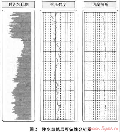 結(jié)合實(shí)際生產(chǎn)數(shù)據(jù)及油氣藏數(shù)值模擬,研究該氣田開采后期儲層孔隙壓力的衰減變化規(guī)律,通過室內(nèi)試驗測定崖城13-1氣田地層力學(xué)特性及強(qiáng)度特征(圖3),以及測井資料的分析處理,建立該氣田測井資料求取地層強(qiáng)度的經(jīng)驗?zāi)P?;利用多孔彈性介質(zhì)力學(xué)、巖石力學(xué)理論,建立井壁坍塌壓力及破裂壓力的計算模式,得出預(yù)鉆調(diào)整井地層孔隙壓力、坍塌壓力及破裂壓力剖面,為確定合理鉆井液密度及優(yōu)化井身結(jié)構(gòu)提供科學(xué)依據(jù)。
