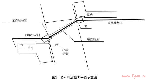 通過對地質(zhì)條件、現(xiàn)場條件及相關(guān)不利因素的充分分析,最終決定采用淺埋暗挖施工技術(shù)進(jìn)行T2~T3點段的施工,其理由有以下幾點: