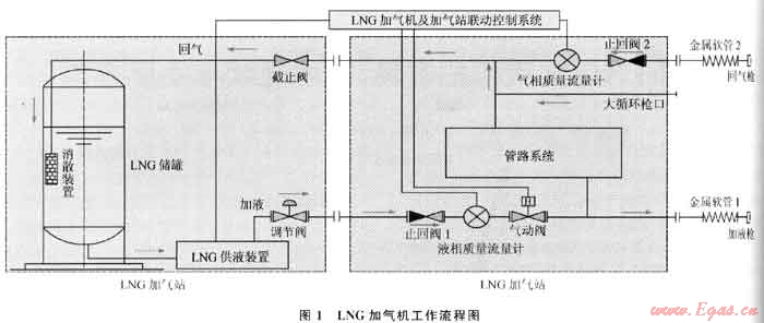 圖1為L(zhǎng)NG加氣機(jī)的工作流程圖,其流程包括: