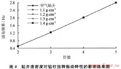 3.1.2鉆井液密度對扭轉振動的影響