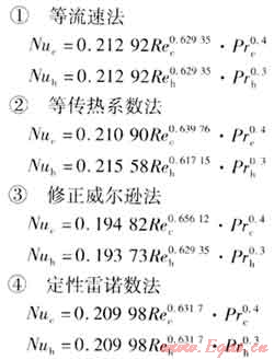 本文選取等雷諾數(shù)法、等流速法、等傳熱系數(shù)法、修正威爾遜法、定性雷諾數(shù)法進(jìn)行理論分析。