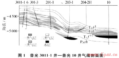 普光氣田目前已完鉆6口水平井,鉆遇氣層厚度介于398.6~623.5m之間,均達(dá)到或超過設(shè)計(jì)指標(biāo)。如P202-2H井,原為部署在P202井臺(tái)上的1口定向井,根據(jù)該井臺(tái)上P202-1井(直井)實(shí)施情況及儲(chǔ)層預(yù)測(cè)結(jié)果(圖4),該井區(qū)氣層厚度介于120~150m,且縱向上分布比較集中,適合打水平井,因而重新進(jìn)行了井型優(yōu)化。該井設(shè)計(jì)水平段長(zhǎng)470m,鉆遇氣層厚度602m,比設(shè)計(jì)為斜井多鉆氣層400m。2009年5月,該井投產(chǎn)試氣,射開氣層558m,測(cè)試無阻流量686×104m3/d。