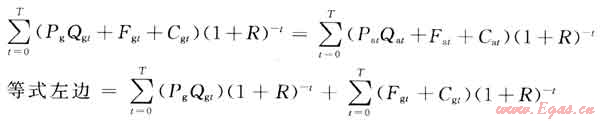 根據(jù)“替代價值法”的原理,在達(dá)到相同使用效果前提下,在天然氣使用裝置經(jīng)濟(jì)壽命期內(nèi)付出的累計投入現(xiàn)值應(yīng)等于使用天然氣等價替代物的裝置經(jīng)濟(jì)壽命期內(nèi)付出的累計投入現(xiàn)值,即: