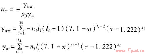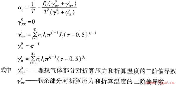 γπτ——γ(π,τ)對(duì)折算壓力和折算溫度的二階偏導(dǎo)數(shù)