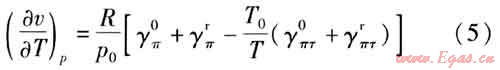 在區(qū)域5中,γ(π,τ)由理想氣體部分和剩余部分的無量綱Gibbs比自由能組成,γ(π,τ)與比體積的關(guān)系表達(dá)式與區(qū)域2中的形式相同,因此,可以得到區(qū)域5中體膨脹系數(shù)和壓縮系數(shù)的計(jì)算公式。
