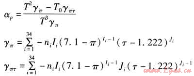 在區(qū)域1中,γ(π,τ)以折算壓力π和折算溫度τ為獨(dú)立變量。比體積與基本方程之間的關(guān)系表達(dá)式為: