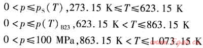 式中p(T)B23——溫度為T時(shí),由B23方程所確定的區(qū)域2、3的邊界壓力,MPa