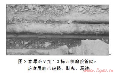 2009年,公司對埋地鋼管腐蝕較為嚴(yán)重的西城路特陶小區(qū)進(jìn)行全面改造,將埋地鋼管全部更換為PE管,至今平穩(wěn)安全運(yùn)行,取得了很好的效果。但因費(fèi)用較高、開挖困難,難以全面推廣。