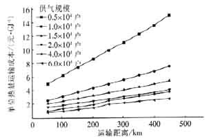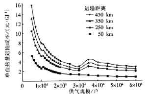 Fig.4 Variation curve of annual transport cost with gas supply scale