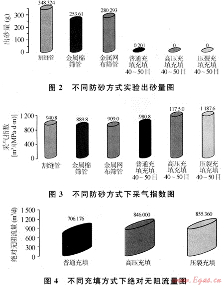 1) 篩管裸眼與普通充填對防砂效果的影響。