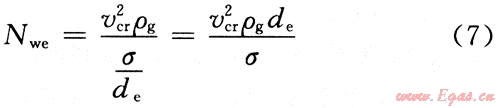橢球體液滴韋伯數(shù)的臨界值為20~30。當氣體流速大到足以使韋伯數(shù)達到臨界值時,速度壓力起主要作用,液滴就容易破壞。取韋伯數(shù)為Nwe=30回代到式(7),解出最大液滴的直徑(de),即