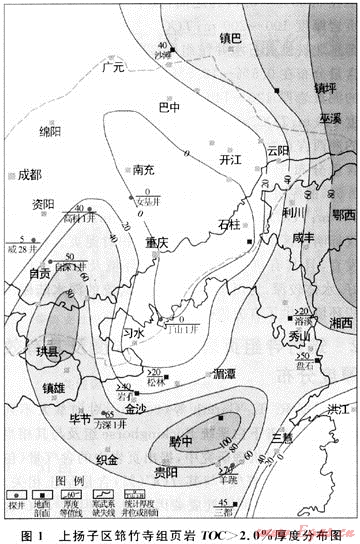 筆者在研究上揚子區(qū)下寒武統(tǒng)筇竹寺組頁巖氣成藏條件分析時,首先根據(jù)黃籍中等(2006)[4]、梁狄剛等(2008)[2]和黃先平、王世謙等(2002)對筇竹寺組頁巖有機質(zhì)豐度及其熱成熟度的研究資料,結(jié)合美國從事頁巖氣勘探開發(fā)油公司所確定有效頁巖有機質(zhì)豐度下限值等資料,并結(jié)合中國海、陸相源巖有機質(zhì)豐度分布的實際,進行了上揚子區(qū)下寒武統(tǒng)筇竹寺組頁巖有效厚度分布研究。