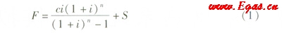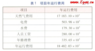 天然氣是一種清潔、優(yōu)質(zhì)、使用方便的能源。與燃煤鍋爐房相比,燃?xì)忮仩t房可省去脫硫、除塵、上煤、除渣等設(shè)備,無(wú)需煤、渣堆場(chǎng),節(jié)省用地,運(yùn)行管理較簡(jiǎn)單。該項(xiàng)目供熱面積為612×104m2,鍋爐熱效率取0.95,天然氣的低熱值為35.16MJ/m3,天然氣額定耗量為36400m3/h。天然氣價(jià)格按1.65元/m3計(jì)算,電價(jià)按0.59元/(kW·h)計(jì)算,水價(jià)按5.5元/t計(jì)算,人員工資按4×104元(人·a)計(jì)算,年維修費(fèi)按設(shè)備造價(jià)的1.8%計(jì)算。項(xiàng)目年運(yùn)行費(fèi)用見(jiàn)表1。由表1可知,項(xiàng)目的年運(yùn)行費(fèi)用為18482.03×104元/a。項(xiàng)目造價(jià)為25140.38×104元,使用壽命為20a,年收益率為5%。采用費(fèi)用年值法對(duì)項(xiàng)目進(jìn)行經(jīng)濟(jì)性分析,費(fèi)用年值F的計(jì)算式為: