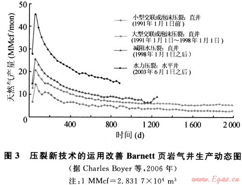 3.2 壓裂增產(chǎn)技術(shù)的進步顯著提高了頁巖氣的產(chǎn)量