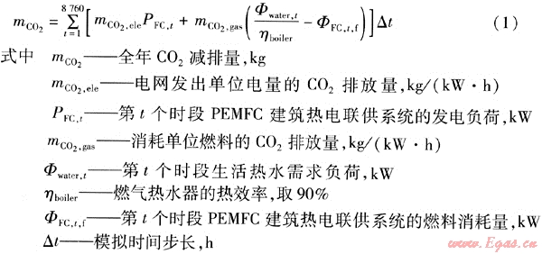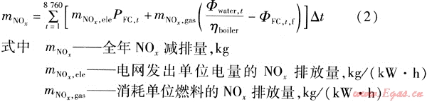 PEMFC建筑熱電聯(lián)供系統(tǒng)年C02和N0x減排量按下式計算: