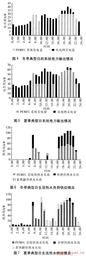 ① 對于PEMFC建筑熱電聯(lián)供系統(tǒng),采用靈活的運行方式,系統(tǒng)可以在很大程度上滿足用戶的電和熱水需求。