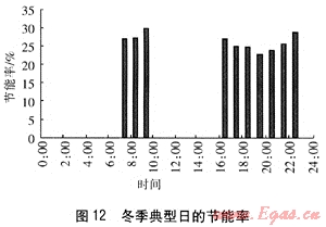 PEMFC建筑熱電聯(lián)供系統(tǒng)的節(jié)能率定義為滿足相同的電、熱水需求條件,PEMFC建筑熱電聯(lián)供系統(tǒng)比基準方案節(jié)約燃料量與基準方案消耗燃料最之比。PEMFC建筑熱電聯(lián)供系統(tǒng)在冬季工況和夏季工況的節(jié)能率見圖12、13。