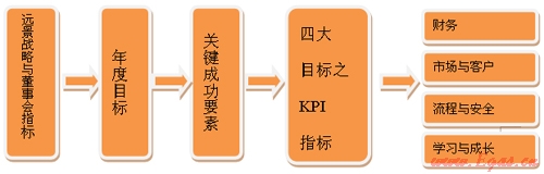 此外,國(guó)內(nèi)著名的港華燃?xì)饧瘓F(tuán)將平衡計(jì)分卡的四個(gè)構(gòu)面改稱(chēng)為“四大目標(biāo)”,把推行平衡計(jì)分卡績(jī)效管理改稱(chēng)為推行“四大目標(biāo)”管理,使口徑變得直觀好記,更利于集團(tuán)向各所屬公司推廣平衡計(jì)分卡績(jī)效管理。