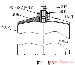在鉆頭切削鉆進的過程中,必須有水沖洗鉆頭,水流的速度可自行控制,為了使水流入正在旋轉的鉆頭內,設計了入水口,實現(xiàn)了水對鉆頭的冷卻、潤滑和排屑作用。