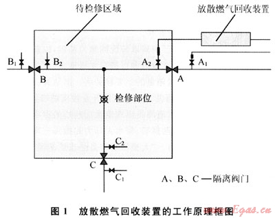 圖1是放散燃氣回收裝置的工作原理框圖[1]。