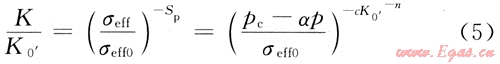 目前研究者在研究變形介質(zhì)油氣藏滲流理論時(shí),大多數(shù)文獻(xiàn)[1~7]都采用了指數(shù)形式的滲透率變化式: