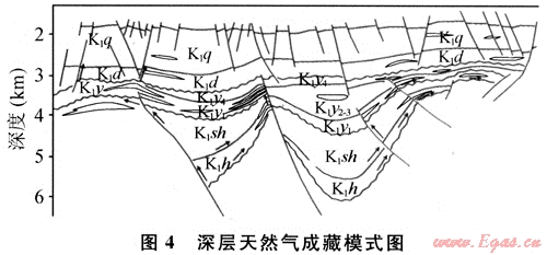 深層發(fā)育34個相互獨立的斷陷,天然氣資源量3.92×1012m3,勘探潛力大。天然氣成藏受斷陷規(guī)模、火山巖發(fā)育程度及斷裂與不整合面控制,以下部含氣系統(tǒng)為主;成藏條件好的中小型斷陷將是深層天然氣勘探重要的接替領域。