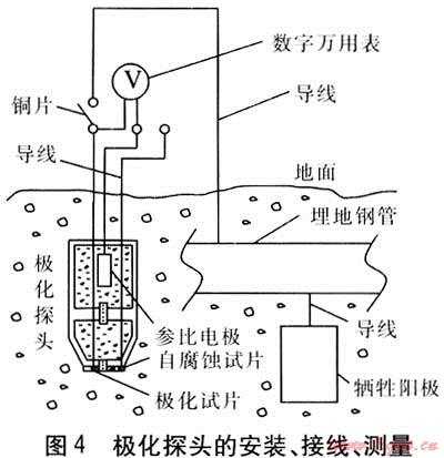 極化探頭法的安裝、接線、測(cè)量見(jiàn)圖4。