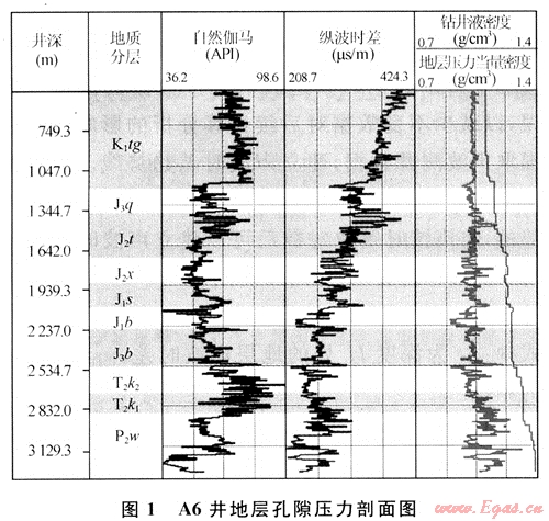 就鉆井工程而言,地層壓力是近平衡壓力鉆井的依據(jù),對(duì)于設(shè)計(jì)套管程序、合理選用鉆井液密度、減少油氣層污染等方面都具有重要的經(jīng)濟(jì)價(jià)值[1~2]。因此,能否進(jìn)行準(zhǔn)確的地層孔隙壓力評(píng)價(jià),正確認(rèn)識(shí)鉆井地層壓力環(huán)境,已成為急需解決的問(wèn)題。通過(guò)對(duì)準(zhǔn)噶爾盆地地質(zhì)構(gòu)造及地層壓力成因機(jī)理的分析,應(yīng)用測(cè)井資料解釋方法對(duì)準(zhǔn)噶爾盆地東部地區(qū)A1井等6口井的地層壓力進(jìn)行了預(yù)測(cè)。結(jié)果表明,該預(yù)測(cè)技術(shù)具有很強(qiáng)的實(shí)用性,計(jì)算精度高。