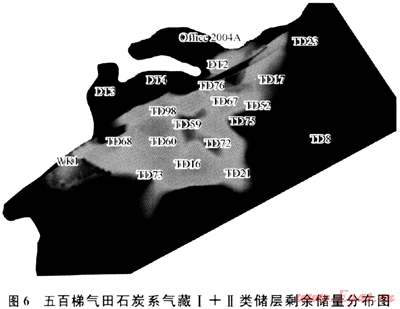 1) 精細氣藏描述技術。形成地震儲層預測技術、裂縫精細表征技術、氣藏精細地質建模技術、氣藏開發(fā)動態(tài)監(jiān)測技術、精細氣藏數(shù)值模擬技術、剩余儲量描述技術、治水挖潛增效開發(fā)技術等7個精細氣藏描述主體技術系列。老氣田精細氣藏描述成為重新認識和評價老氣田,弄清剩余儲量分布,明確挖潛目標,制訂合理開發(fā)調整方案的重要手段。通過對五百梯氣田石炭系(圖6)等11個氣藏進行精細描述,核增地質儲量317.16×108m3,增加可采儲量173.41×108m3,延長穩(wěn)產年限2~5a,提高采收率5.8%~12.5%,效果顯著。