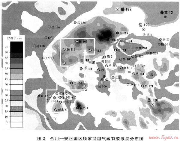 2) 碎屑巖氣藏勘探技術。立足前陸盆地發(fā)展模式,認識了盆地結構控制須家河組氣藏類型,前陸隆起帶和斜坡帶具有形成大中型氣藏的有利條件,有利沉積相、繼承性古構造、高豐度烴源區(qū)和裂縫發(fā)育帶是氣藏富集帶;建立了二維地震網(wǎng)格法采集模式,形成和發(fā)展了大面積砂巖儲層預測技術和識別致密砂巖中高孔儲層的地震綜合預測技術;建立了致密砂巖儲層下限綜合評價技術,創(chuàng)新集成的低電阻氣層測井綜合識別技術,有效解決了大川中“砂中找好砂”的儲層地震預測難題(圖2)。通過這些技術的全面應用和實踐,已初步形成了大川中須家河組氣藏三級儲量萬億立方米規(guī)模儲量區(qū)。