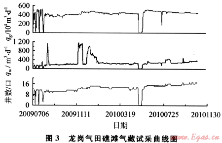 針對龍崗地區(qū)礁灘氣藏高溫、高壓、高含硫特點開展的開發(fā)技術攻關取得重要進展,有力支撐了龍崗氣田試采工程建設和投產。開發(fā)地質綜合評價研究深化了對龍崗氣田礁灘氣藏儲層非均質性、氣井產能、氣田水分布特征的認識,為試采區(qū)合理開采奠定了基礎;形成了分層酸化合層開采的完井管柱優(yōu)化技術和150℃高溫凝膠酸和轉向酸酸液體系,使超深、高溫、高壓、高含硫氣井完井與儲層改造配套技術不斷完善,支撐了龍崗氣田試采區(qū)單井日產量最高達80×104m3氣井的產能建設;建立了井筒安全屏障及實際工況油套管柱安全分析技術,確保了投產的高含硫氣井安全可靠生產;形成和完善了酸性天然氣腐蝕與防腐配套技術,解決了高含硫氣藏井下與地面系統(tǒng)整體防腐問題;高含硫天然氣凈化技術的配套和完善,支持建成了國內單系列最大規(guī)模的脫硫、硫磺回收和尾氣處理裝置,為龍崗氣田試采工程一次投產成功提供了有力保障。龍崗氣田礁灘氣藏投產氣井井均日產氣量達到25×104m3,成為四川盆地有史以來單井日產量最高的氣田(圖3)。