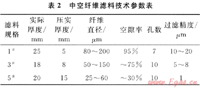 上?;ぱ芯吭貉兄频腟RI系列特制中空纖維濾料是一種具有一定過濾層數(shù)且選擇不同纖維直徑、不同空隙率及不同厚度的多種纖維組成的過濾濾料[8],濾料使用的特制纖維為中空多孔結(jié)構(gòu),纖維直徑的范圍為1~40μm,因此纖維還特別具備“吸附”作用(毛細管效應(yīng)),非常適合于過濾含有一定水分、油分及細微雜質(zhì)的氣體。目前上?;ぱ芯吭阂呀?jīng)研究開發(fā)出40余種不同空隙率、不同過濾精度及不同材質(zhì)的SRI系列纖維濾料,可以根據(jù)工藝要求相應(yīng)調(diào)整過濾精度。
