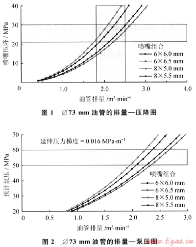在綜合考慮了噴嘴壓降和井口泵壓的條件下,選擇油管注入排量2.2m3/min,此時泵壓為66.9MPa,基本上是井口不超壓的前提下可達到的最高排量。