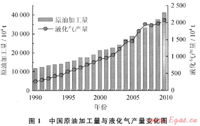 2009年先后有中海油廣東惠州1200×104t/a新煉廠、中石化福建800×104t/a和中石油新疆獨(dú)山子1000×104t/a擴(kuò)建蒸餾裝置等多座新增和擴(kuò)建原油一次加工裝置建成投產(chǎn),合計(jì)能力超過4000×104t/a。新增煉油能力集中投產(chǎn)使得包括液化氣在內(nèi)的油品供應(yīng)能力增長(zhǎng)超過需求。