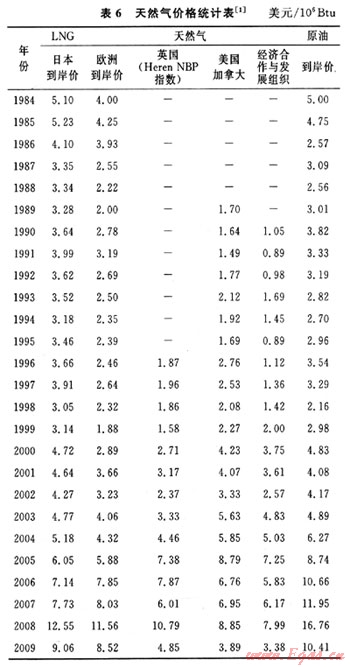 有人可能會(huì)說(shuō)美國(guó)的天然氣價(jià)格比中國(guó)還低,這也是事實(shí)。這是因?yàn)樘烊粴獠煌谑?,沒(méi)有形成世界統(tǒng)一的價(jià)格,全球大致形成了亞太、歐洲、北美3大市場(chǎng),亞太地區(qū)價(jià)格最高,歐洲較低,北美最低(表6)。不可能因?yàn)橹袊?guó)的生活水平低,就能得到廉價(jià)的天然氣,氣價(jià)是由市場(chǎng)決定的。