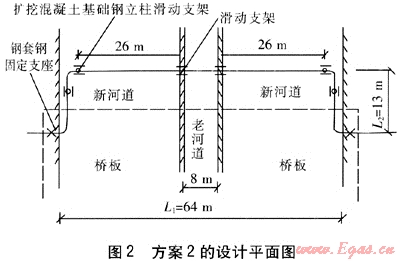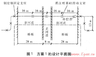 通過比較,方案1的技術(shù)安全易保證,缺點是造價高。方案2的造價較低,但必須進行兩個方面的工作:一是進一步的應(yīng)力驗算,二是對跨度過大的滑動支架應(yīng)采取補強措施。