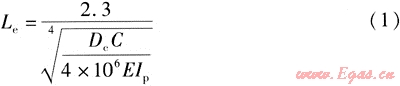 式中Le——L形管道的彈性臂長(zhǎng),m