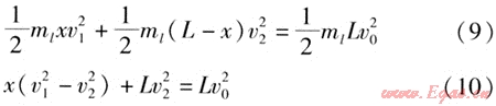 mlxv1+mlv2(L1+L2-x)=mlv0(L1+L2) (5)