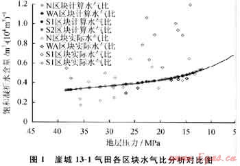 若現(xiàn)場水氣比大于理論計算值,說明地層存在邊、底水或游離態(tài)的可動隙間水進入井筒;若現(xiàn)場產(chǎn)水量小于理論計算飽和含水量,說明地層條件下氣態(tài)凝析水含量未達飽和,產(chǎn)出水以凝析水為主。通過分析,崖城13-1氣田部分區(qū)塊已有地層水侵入(圖1)。