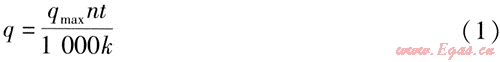 根據(jù)GB 50015—2003《建筑給水排水設(shè)計規(guī)范》和地熱水供應(yīng)洗浴用水的特點,對洗浴用水供水系統(tǒng)設(shè)計計算以及水溫、水量、水質(zhì)進行確定。確定洗浴用水的供水溫度為45℃,最高日用水定額為40L/(人·d)。全日制供水系統(tǒng)的年洗浴熱水用量q的計算式為: